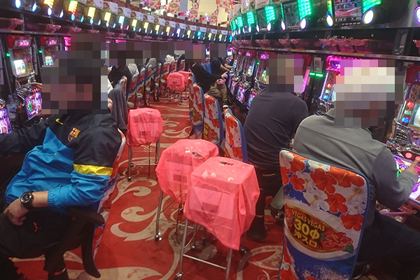 15時頃の21.27円パチスロでは、「沖ドキ!-30」や「バジリスク~甲賀忍法帖~絆」、「押忍!番長3」が大盛り上がりとなっていた。