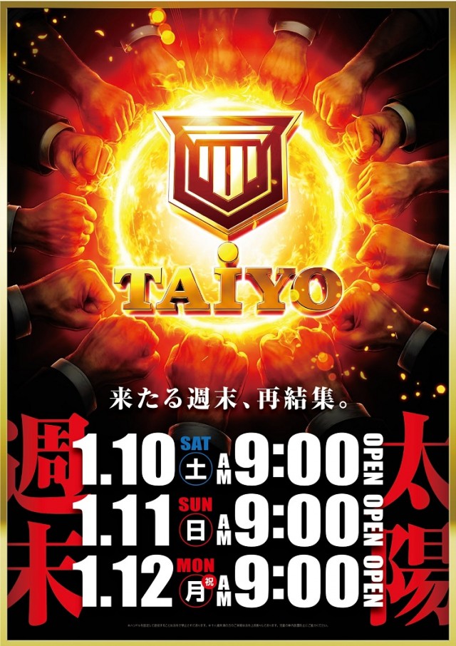 明日1/10新台入替9時開店!!最新台4機種8台導入予定!!