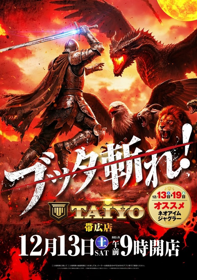 本日12/13新台入替9時開店!!最新台5機種6台導入!!!