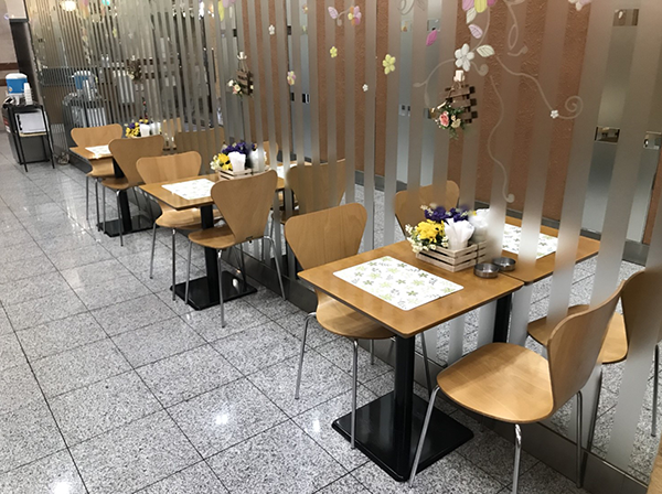 ホール内には、広々としたレストスペースが設けられています。雰囲気も明るく、利用しやすいといったイメージを持ちました。