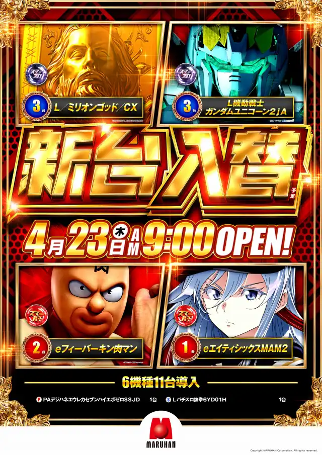 明日4月27日(水)朝9時開店×新台入替×装飾変更実施‼
