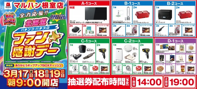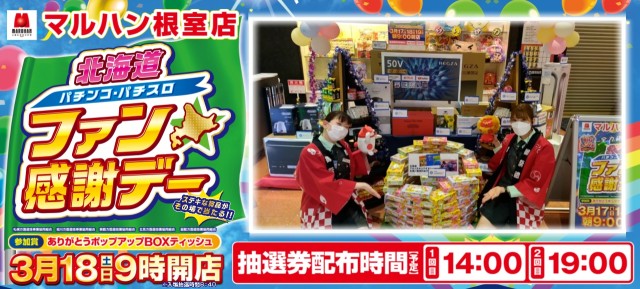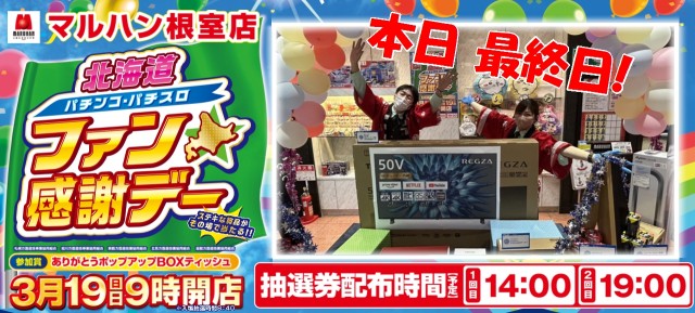 「マルハン根室店」★本日最終日!ファン感デー19時より抽選★