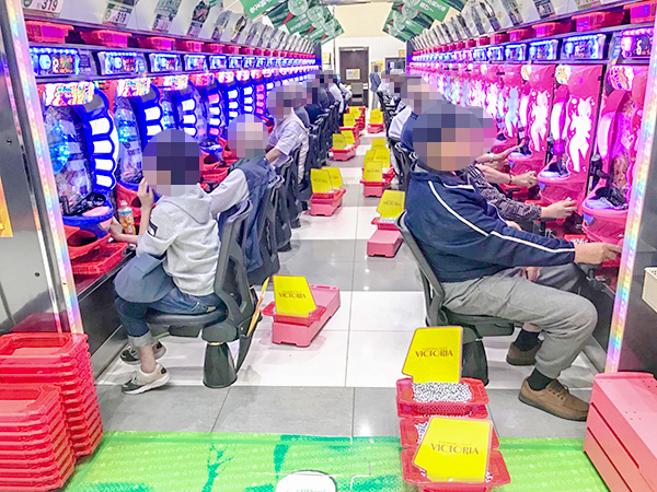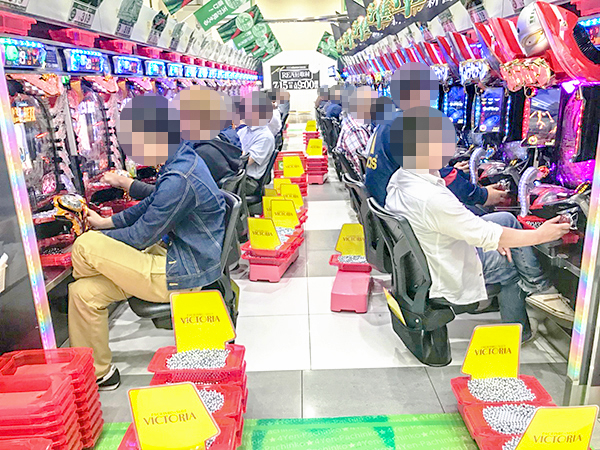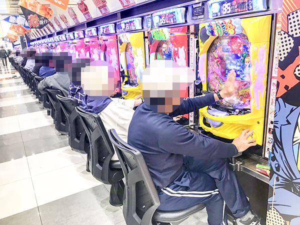 各台計数機が導入されている1.25円パチンコの人気も高く、空き台を探すのがやっとという状況。各人、好きな機種を見つけ出し、心から楽しんでいたように思う。
