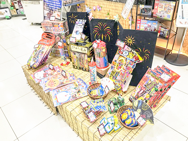 景品コーナーでは色とりどりの花火がアピールされており、プレイヤーたちの目を引いていた。