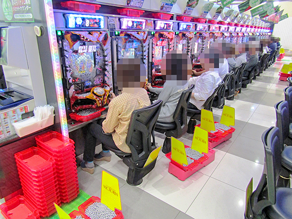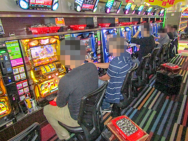 取材時の店内には既に多くのプレイヤーが集結し、パチンコ・パチスロを問わずにぎやかな状況となっていた。