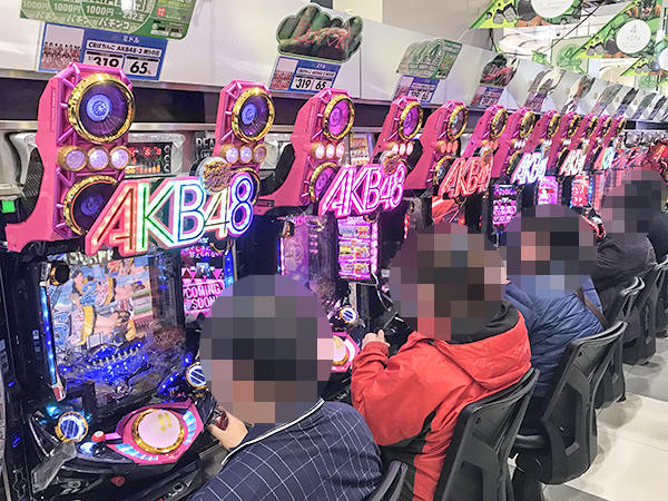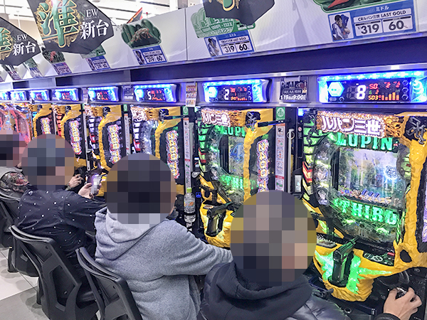 14時ごろの1000円/232玉パチンコを見てみると「CRぱちんこ AKB48-3 誇りの丘」や「CRルパン三世〜LAST GOLD〜」が活況。プレイヤーの満足そうな表情から、充実した時間を過ごしていたことがうかがえる。