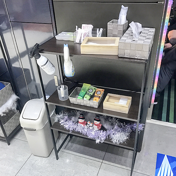 店内にはティッシュ・消臭スプレー・ハンドクリームなどが用意されており、より快適な環境で遊技を楽しめるようになっている。