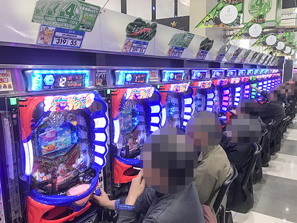 14時ごろの1000円/232玉パチンコを見ると「ぱちんこCR真・北斗無双」や「CR大海物語4」が盛況の様子。華麗なパフォーマンスを披露するプレイヤーを多数目撃している。