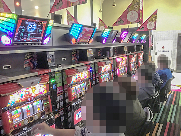 さらに1000円/178枚パチスロの様子をうかがうと、様々な機種で楽しそうにレバーを叩くプレイヤーの姿が見受けられた。