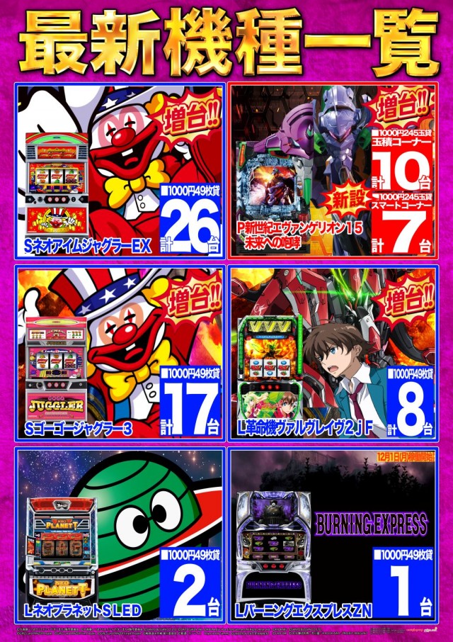 【12月9日(火)10時開店】12月第二弾!新台入替済!!