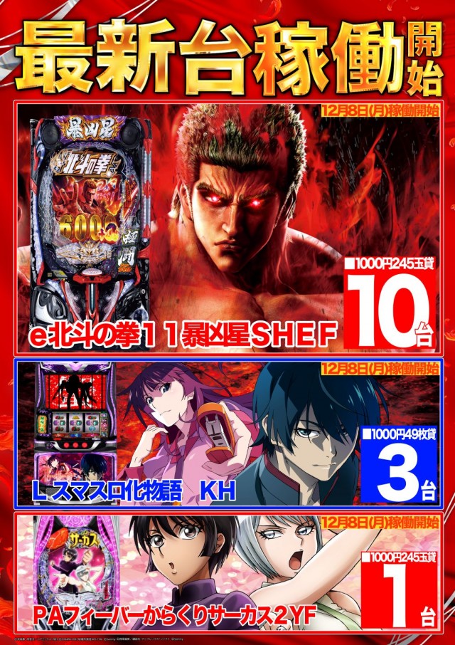 12/8(月)12月第二弾!新台入替初日!地域最速稼働開始!