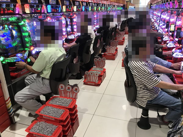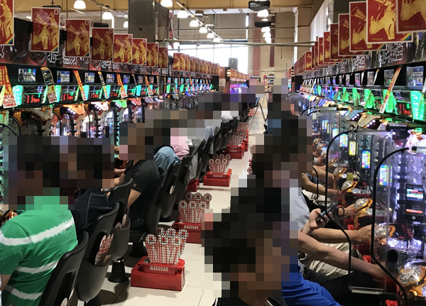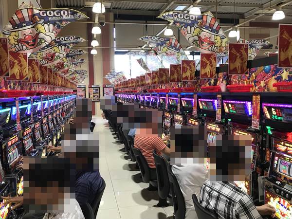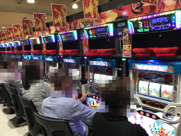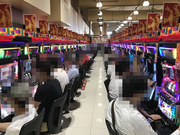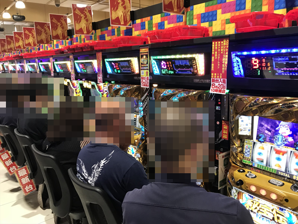 シマのひとつひとつにズラリと並ぶ笑顔がスクープにつながる。たくさんのシャッターチャンスに巡り会った。「マルハン長田店」の一面はパチスロコーナーで決まりだろう。
