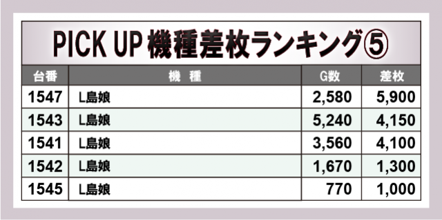 優秀機種として取り上げた5機種は、人気AT機が奮起し、高い活気を披露していたのが上表から窺える。スマスロ機の活躍は上述した通りだが、ノーマルタイプで注目が集まっていたのが、『マイジャグラーⅤ』だろう。2台の4,000枚OVERを筆頭にコンスタントなボーナス当選が見られ、閉店まで打ち尽くされた様子が顕著だ。