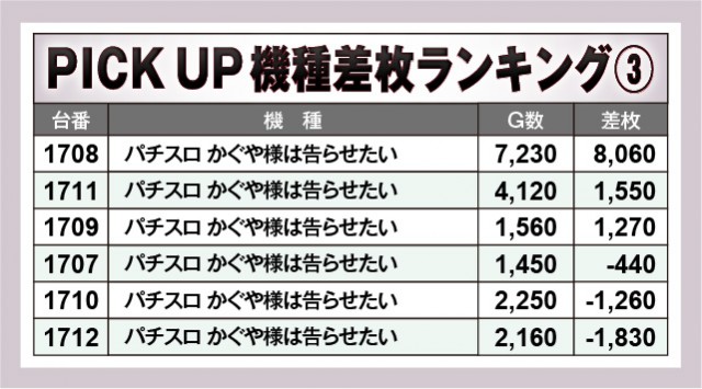 『スマスロ北斗の拳』『L 東京喰種』『パチスロ かぐや様は告らせたい』はそれぞれ半数以上でプラス差枚数を築いており、優秀機種の名に恥じない活躍を披露。万枚OVERという分かりやすい活躍が目に焼きつく、さらに高い回転数をマークしているのも見逃せない部分で、盛り上がりの中心になっていたと言えよう。いずれの機種も厚い信頼を寄せられている機種であるため、遊技していたファンは大きな喜びを噛みしめていたはずだ。