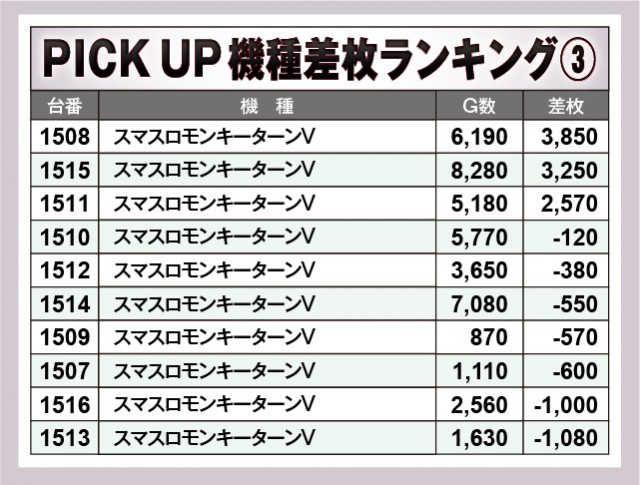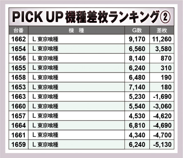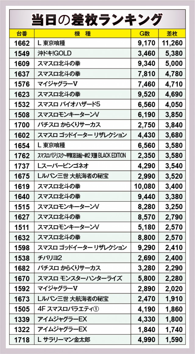※差枚数順に掲載しています。