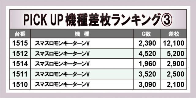 上表で取り上げている5機種は、万枚OVERを筆頭に4桁プラス台が多数発生し、それでいて大きなマイナスも少なく大きく盛り上がっていた様子が確認できる。いずれも同店が丁寧に扱っていると窺うことができ、今後も要注目のエリアなのは間違いないだろう。