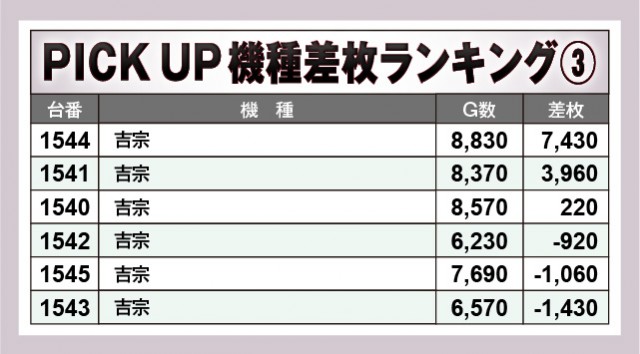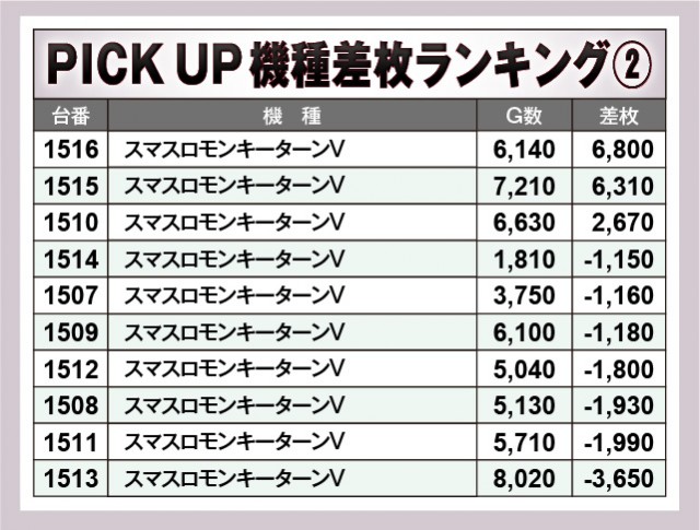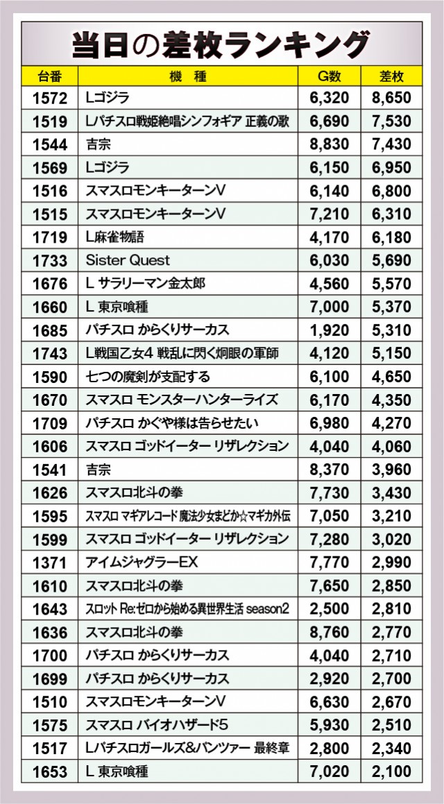 ※差枚数順に掲載しています。
