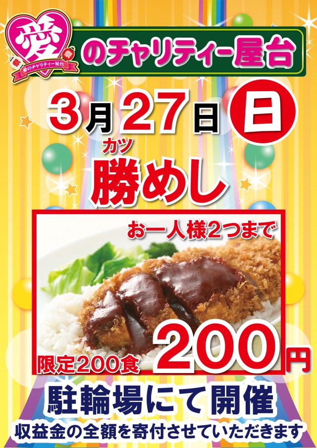 本日27日【愛のチャリティー屋台】開催!今回はカツ飯です!