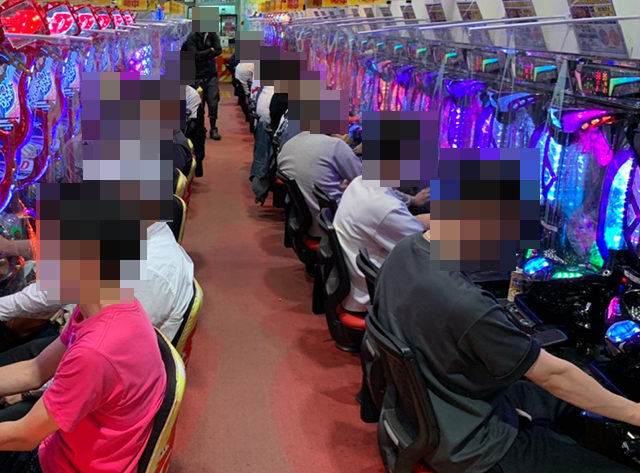 明るい表情で遊技をおこなっているプレイヤーが多く、どのシマも大きくにぎわっていた。