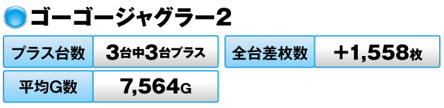 設置の3分の2がプラス、全台差枚数は+3,000枚弱、平均ゲーム数は5,000G超の結果だった。