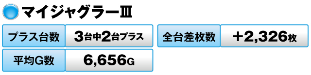 好調台が目立ったのは3機種のジャグラーシリーズ。『マイジャグラーⅢ』『マイジャグラーⅣ』『ゴーゴージャグラー2』だ。