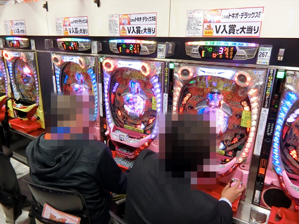 「CRAトキオデラックス」などの羽根物タイプコーナーも明るい雰囲気。イキイキとした表情で玉の動きを見つめるプレイヤーの姿が印象的であった。