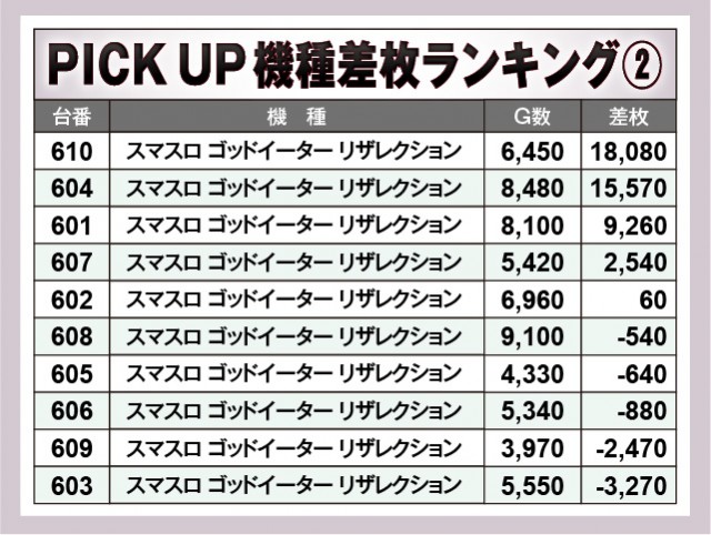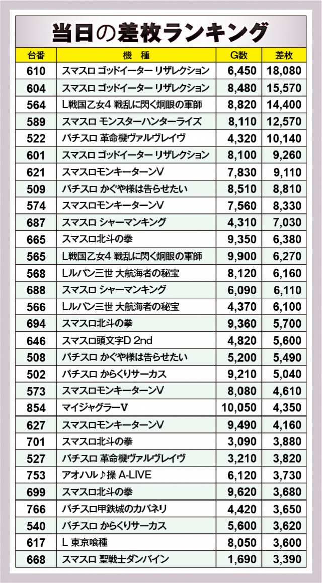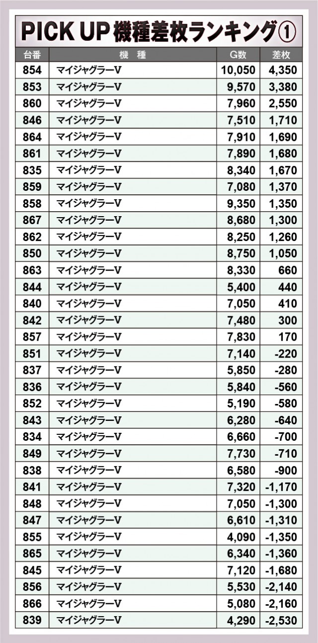 ※差枚数順に掲載しています。
