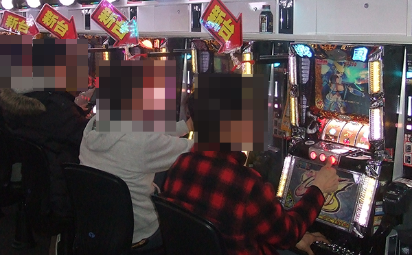 なかでも、新台の「戦国乙女2〜深淵に輝く気高き将星〜」と「バジリスク~甲賀忍法帖~絆」が人気で、満席といった状況。