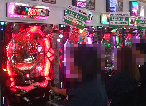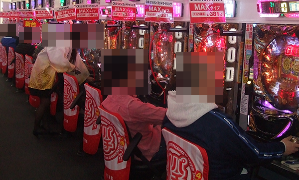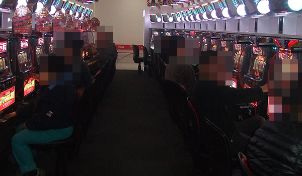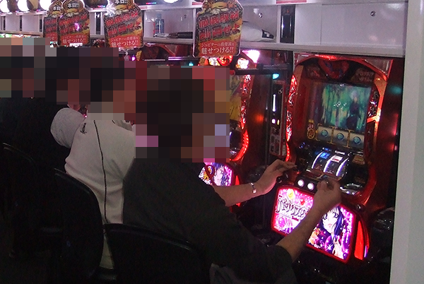 夕方頃になると、とくにパチスロが盛り上がっていた。