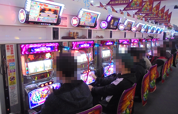 ホール内を進んでいくと、プレイヤーが活躍をみせる「沖ドキ!-30」が目についた。
