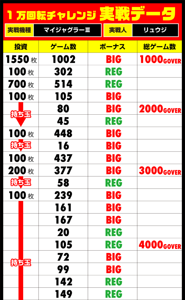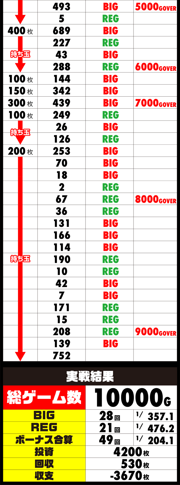 18時には7000Gを余裕で突破し、閉店の1時間以上前に1万回転到達といった自己最高記録のスピードでフィニッシュ!