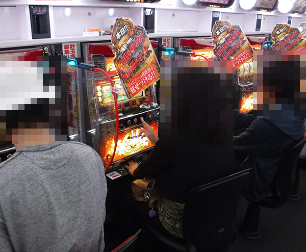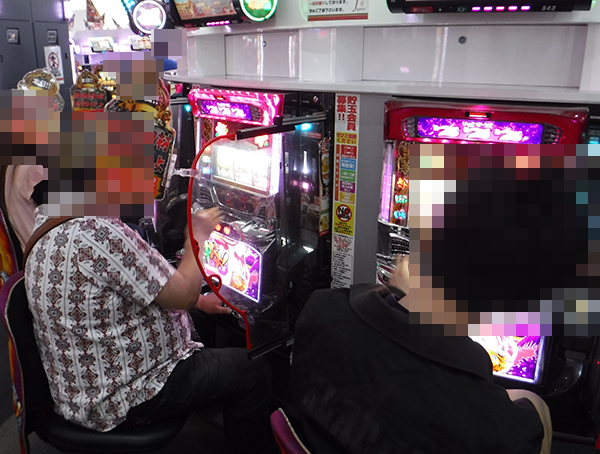 14時頃のパチスロでは、「バジリスク~甲賀忍法帖~絆」と「沖ドキ!-30」が盛況。機種の魅力を味わえているといったプレイヤーが多く、満足度の高さも感じられた。