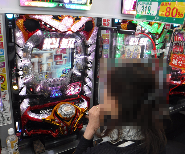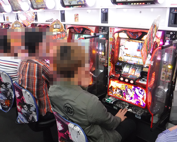 4円パチンコをみると、前日の取材時とおなじく「ぱちんこCR北斗の拳7 転生」の支持が厚い。魅力的な場面もみられ、楽しげな雰囲気となっていた。