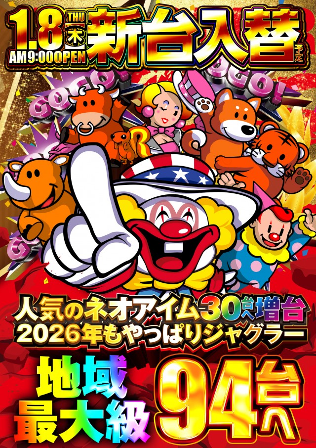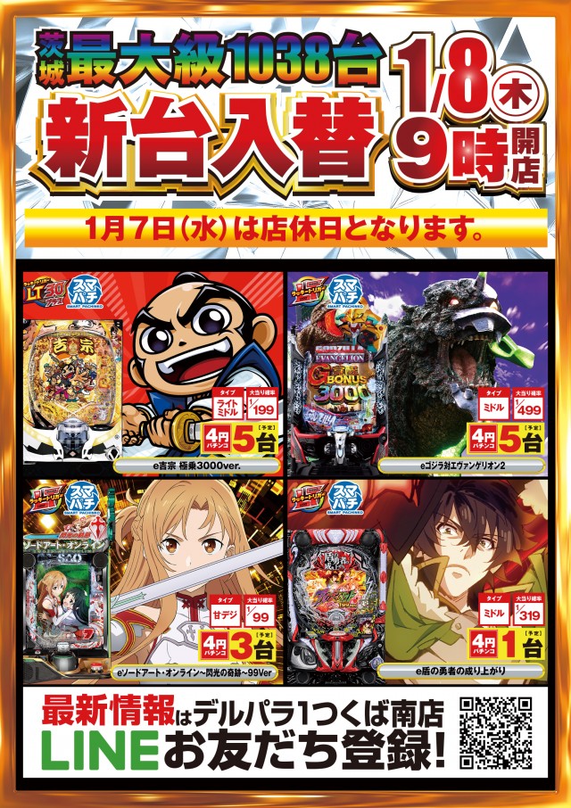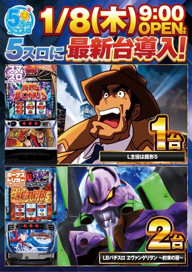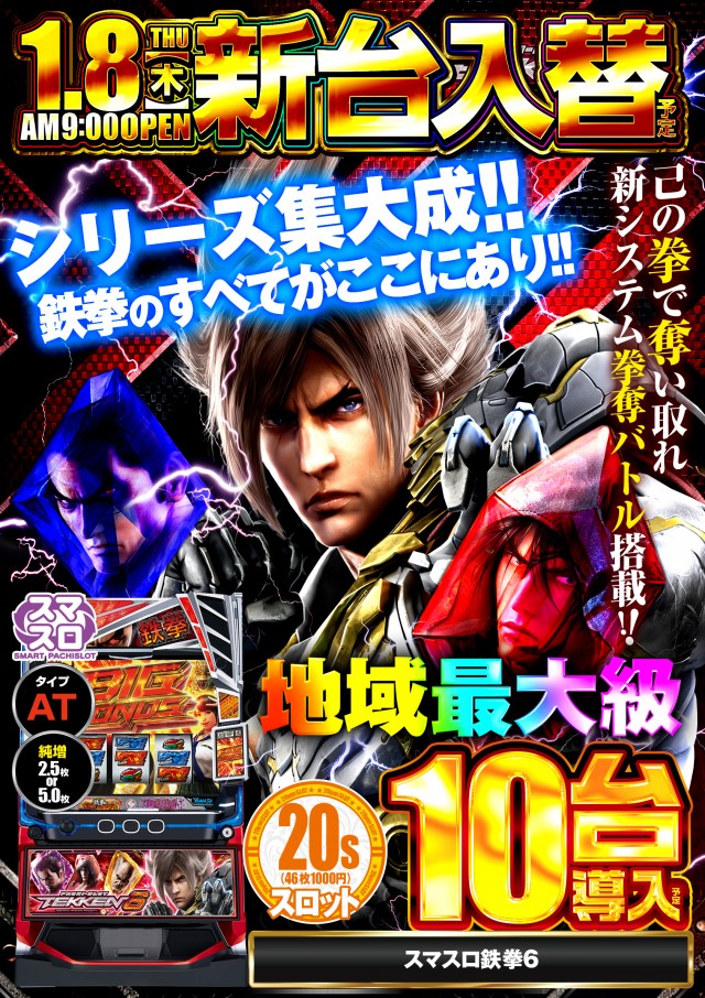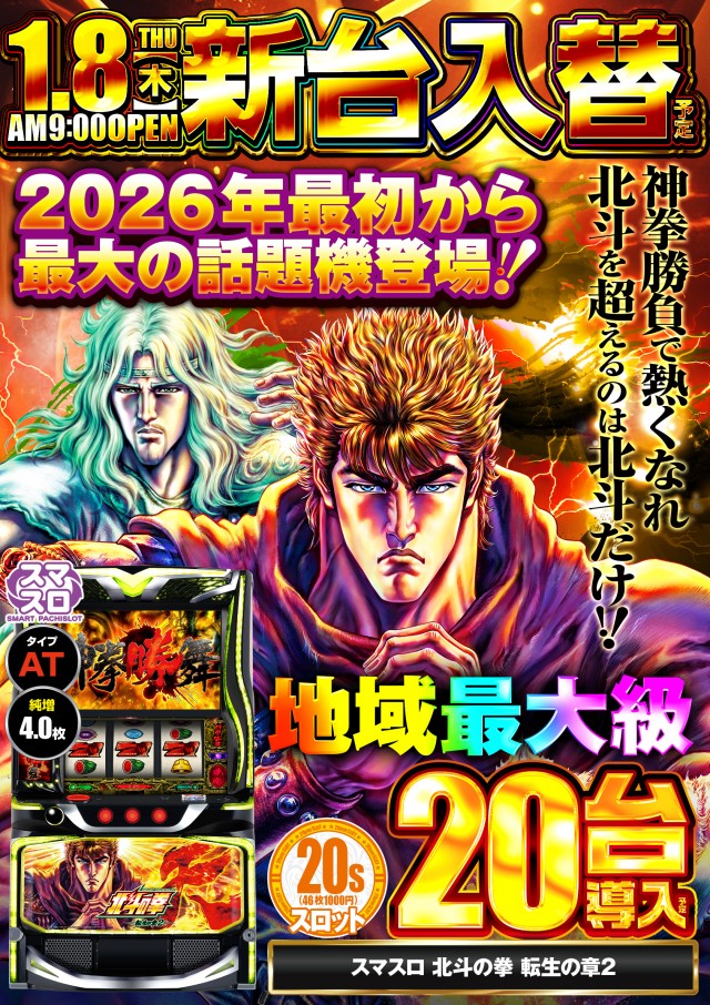 1月8日(木)新年最初の新装開店‼ 北斗転生20台導入!!