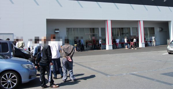 入場方法は並び順で、およそ100人ものプレイヤーが列を作って開店を待ちわびていた。先頭のプレイヤーが7時から並んでいたということからもその期待感は伝わってくる。