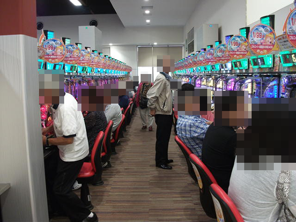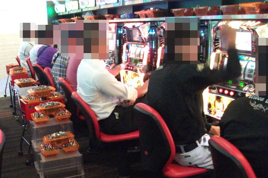 14時過ぎの店内では、4円パチンコの「CRスーパー海物語IN沖縄3」はシマ一帯が大盛況。目を見張るような台がいくつもあり、その台を打っていたプレイヤーの表情は誰よりも光り輝いているようにみえた。