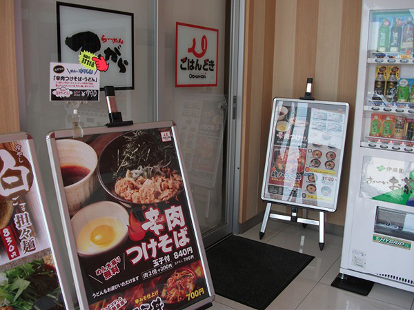 また、食事処も併設。辛肉つけそばや鶏ハラミ丼など、食欲をそそるメニューがたくさん用意されている。休憩や小腹が空いた際に利用してみてはいかがだろうか。