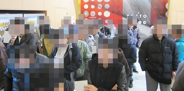 入場方法は並び順のため、早朝から来ているプレイヤーも多く、開店直前には約200名もの大行列ができていた。