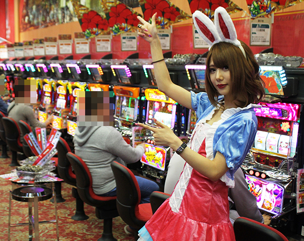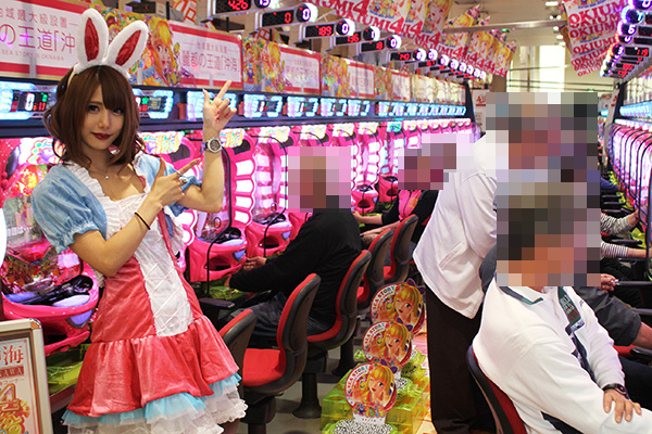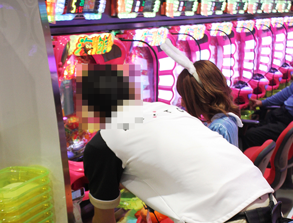 実戦機種として選んだのは、パチンコの「CRスーパー海物語IN沖縄4」。端っこの席をゲットしました!