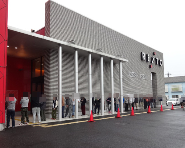 ホールの前には開店を待つ人による長蛇の列を確認。また、開店直前まで車の中で待機している人も多かった。