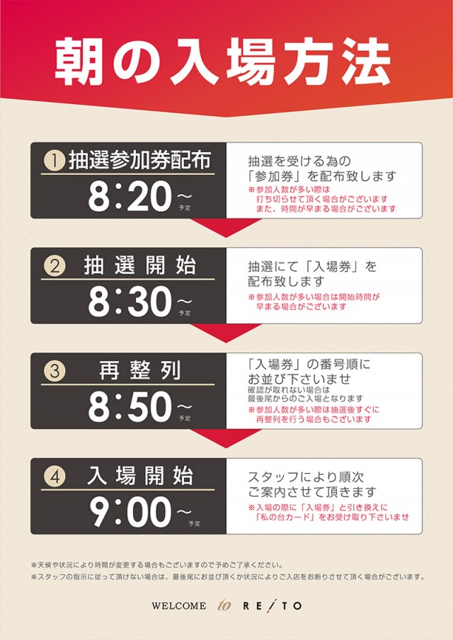 8時20分から抽選参加券配布、8時30分から抽選。 |