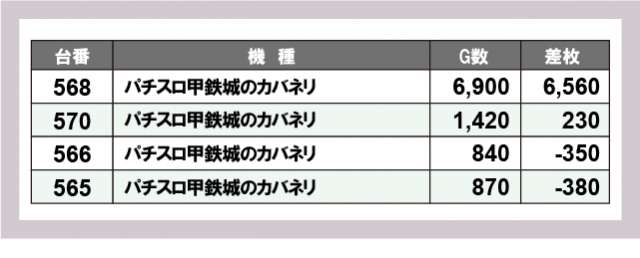 ※差枚数順に掲載しています