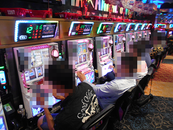 地下1階のパチンコフロアと地下2階のパチスロフロアで構成されている店内をみていくと、パチスロフロアがひときわにぎわっていた。