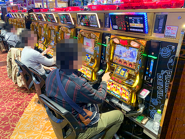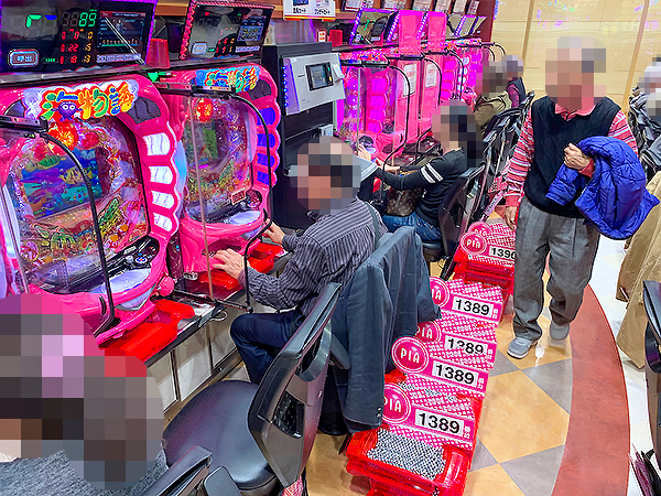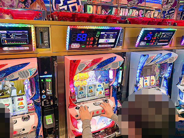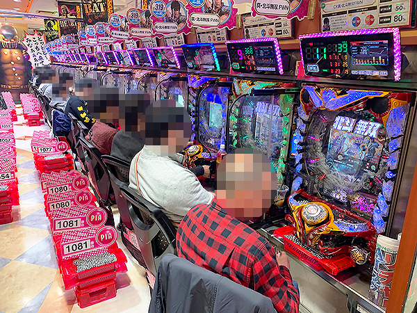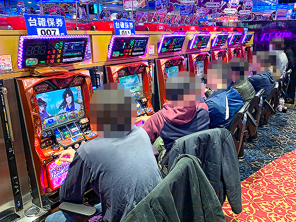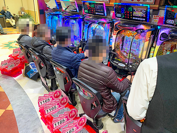 14時過ぎの500円/116玉パチンコをチェックすると「ぱちんこCR真・北斗無双」や「CR真・花の慶次2〜漆黒の衝撃 2400」、「CRフィーバー戦姫絶唱シンフォギア」が活況の様子。好調なプレイヤーが複数見受けられ、時折見せる嬉しそうな表情が印象に残っている。