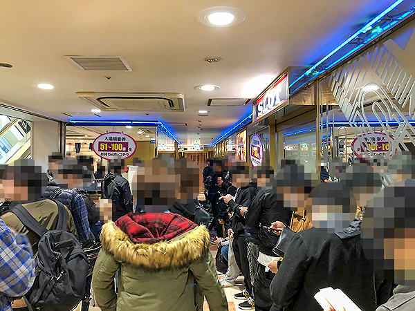 開店前から約120人ものプレイヤーが列を形成。各人とも遊技開始を待ちきれない様子だった。