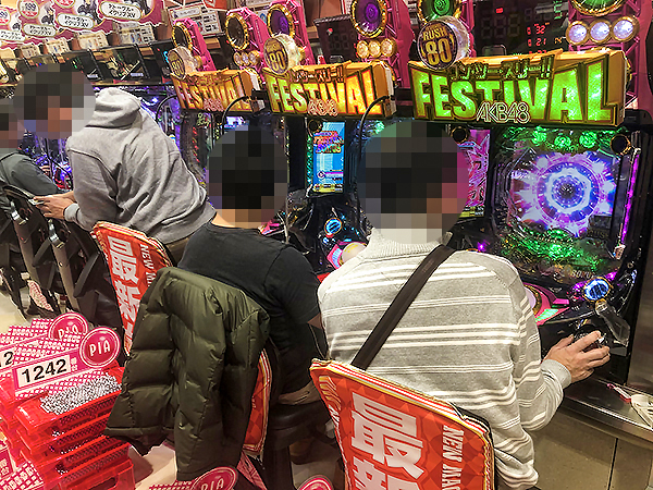 15時過ぎの500円/116玉パチンコでは「CR大海物語4」や「ぱちんこ AKB48 ワン・ツー・スリー!! フェスティバル」が好評で、魅力的なシーンを幾度も目にしている。