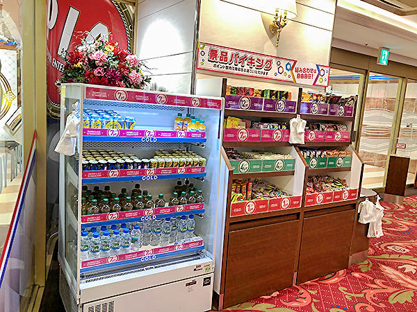 景品コーナーにはドリンクやお菓子など多彩なアイテムが並んでおり、プレイヤーたちの興味をそそっていた。