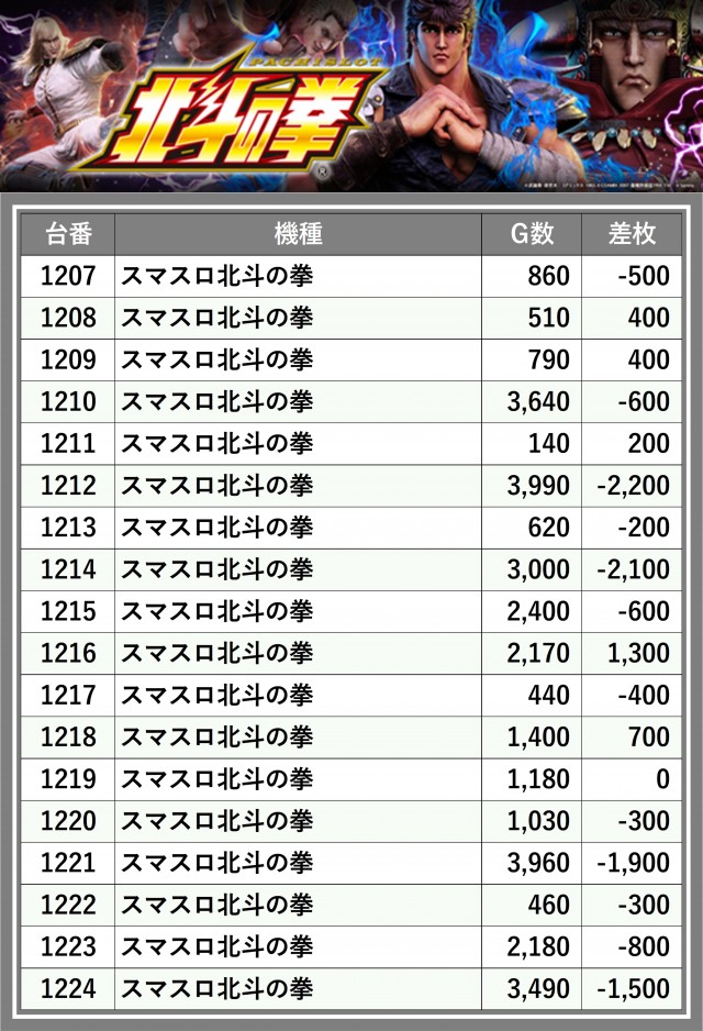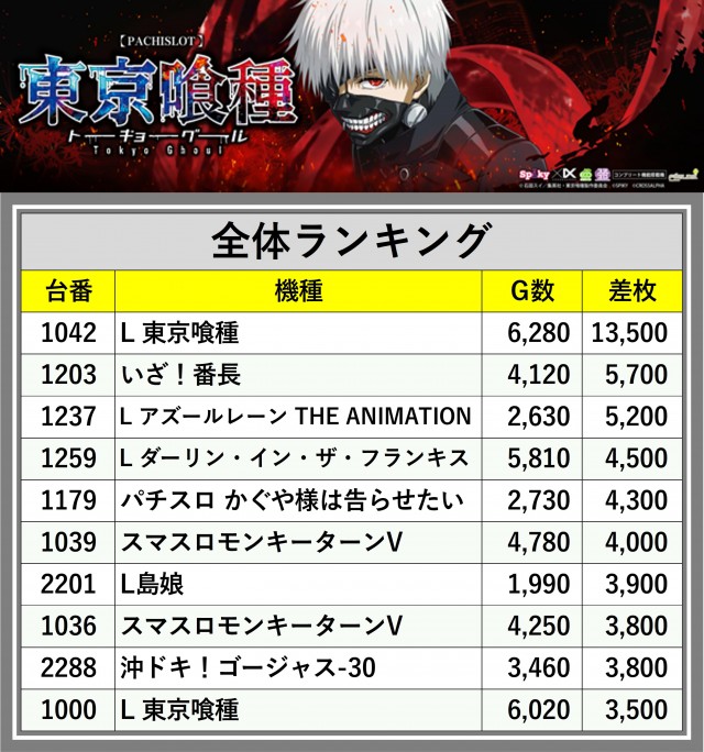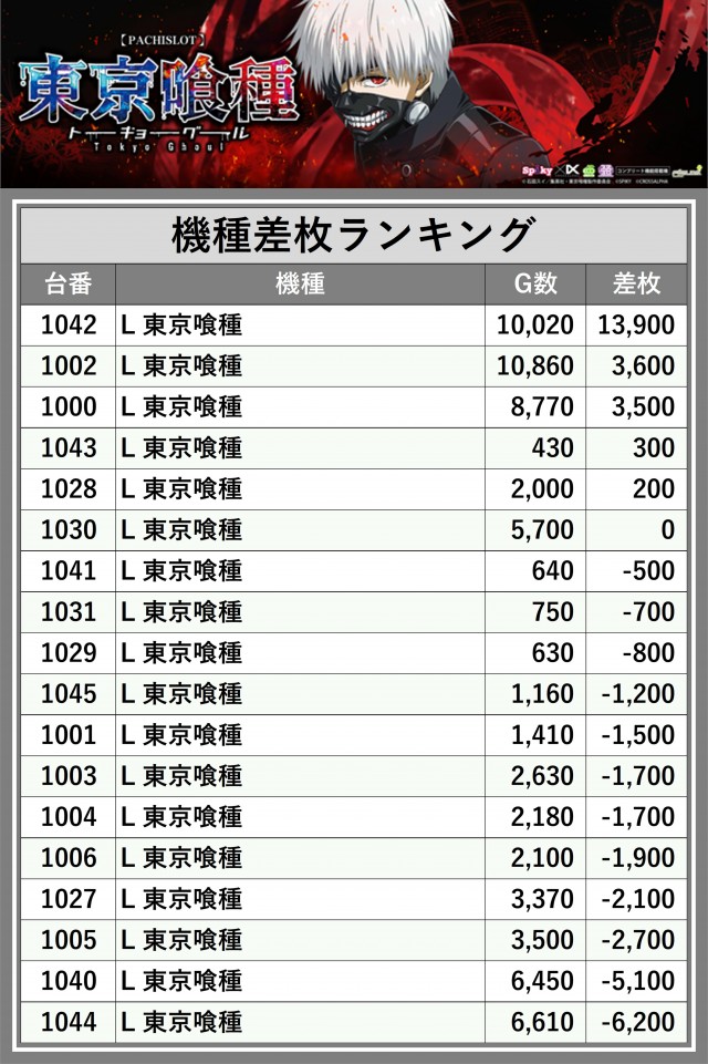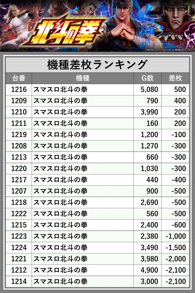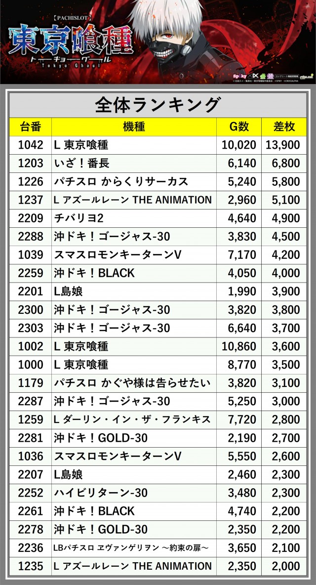 ※差枚数順に掲載しています