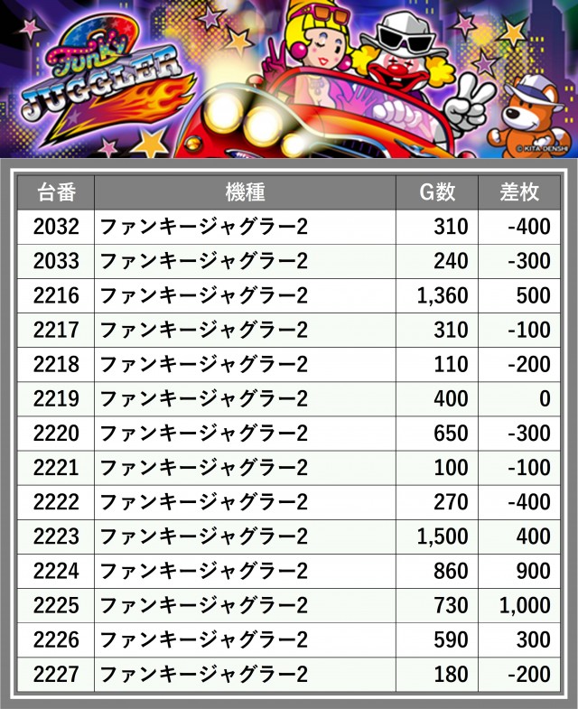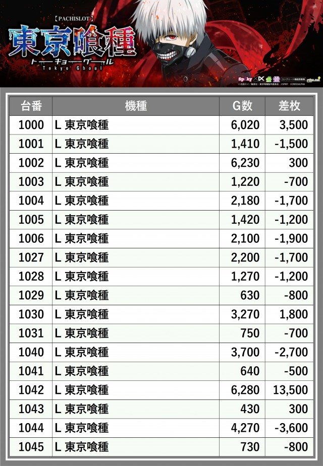 ※台番順に掲載しています