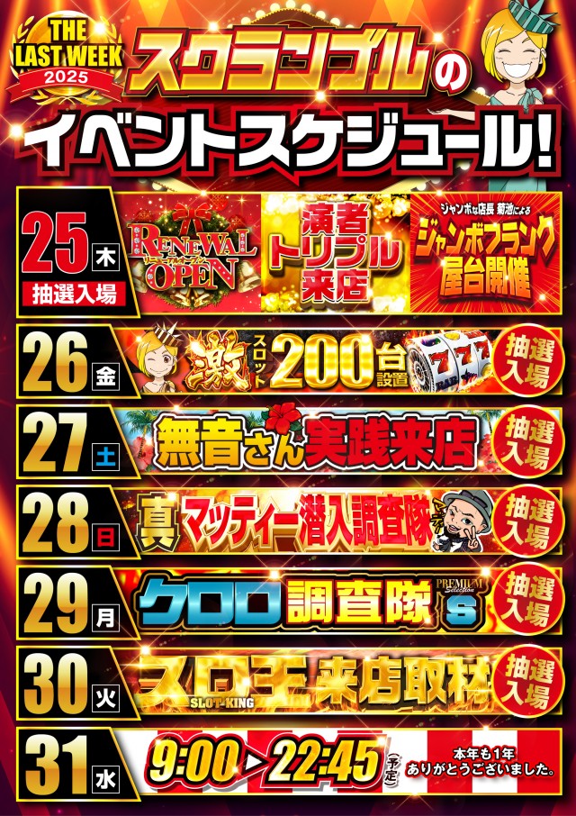 大盛り上がりは今日だけじゃない😎明日は激スロ抽選は8:40~